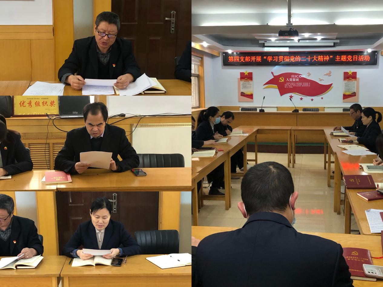 按照市委組織部《關(guān)于認(rèn)真開展2022年12月主題黨日活動(dòng)的通知》及公司黨委要求,并結(jié)合支部工作安排,第四支部于12月5日開展“學(xué)習(xí)貫徹黨的二十大精神”主題黨日活動(dòng)?,F(xiàn)將情況匯報(bào)如下: