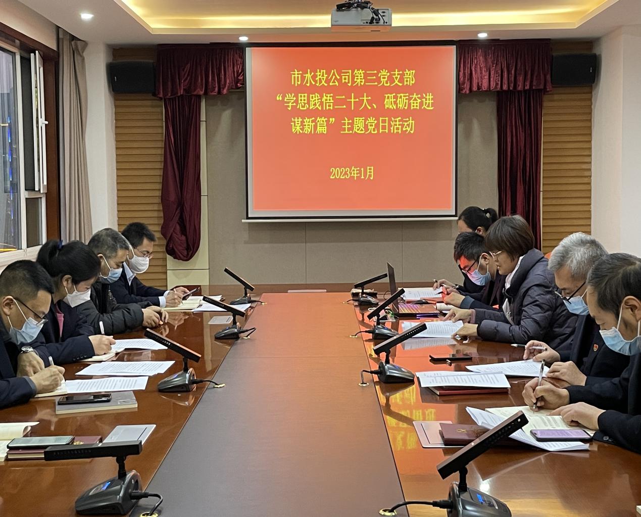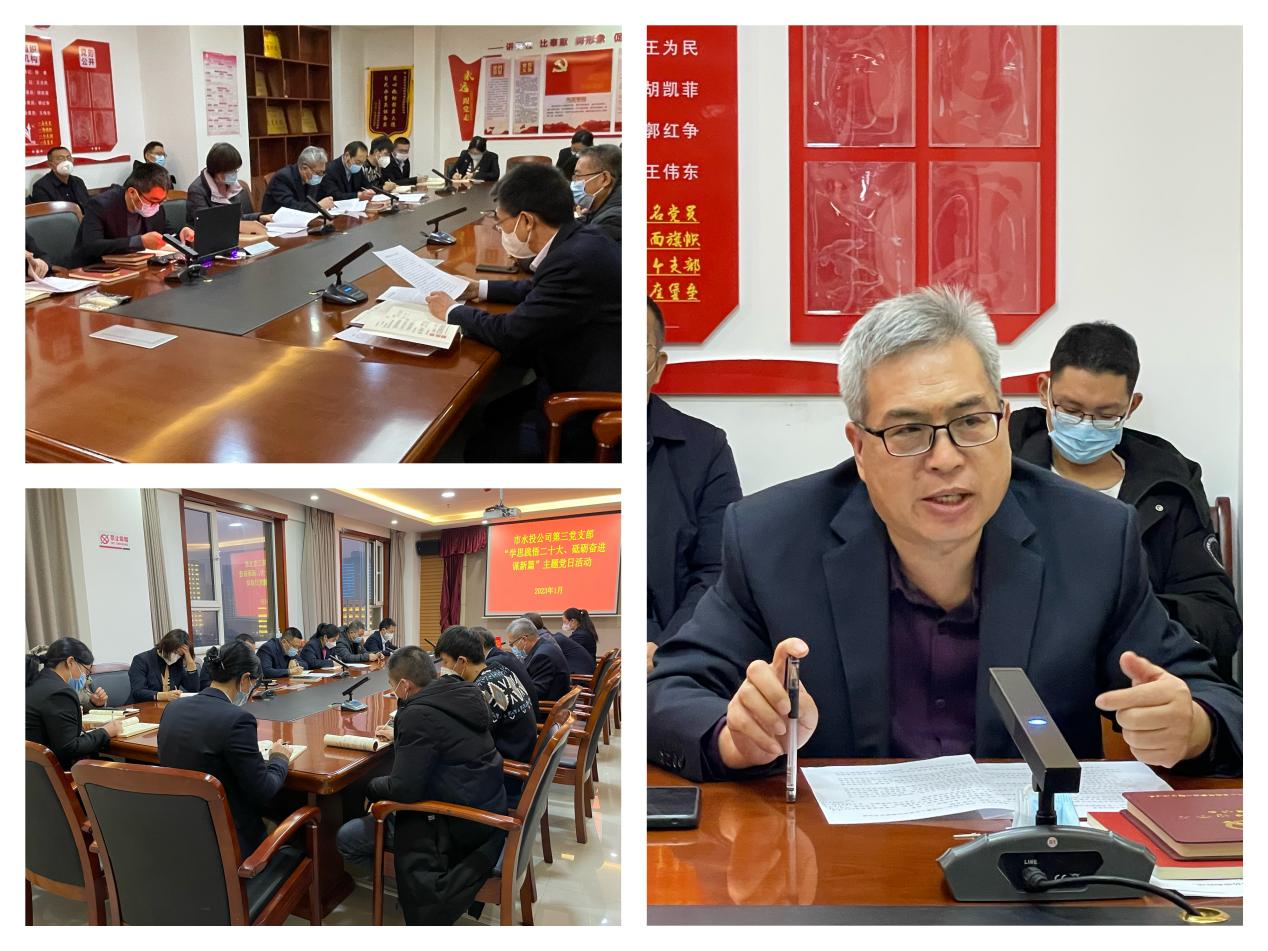 按照市委組織部《關(guān)于認(rèn)真開展2023年1月黨支部主題黨日活動的通知》要求,結(jié)合公司黨委安排部署,1月3日下午,支部組織黨員、各科室負(fù)責(zé)人和群眾代表開展了“學(xué)思踐悟二十大、砥礪奮進謀新篇”主題黨日活動。