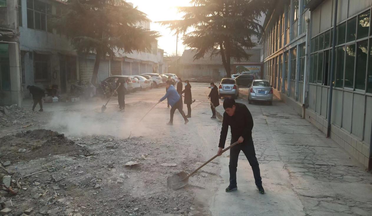會(huì)后,為營(yíng)造干凈整潔的辦公環(huán)境,支部組織全體黨員對(duì)公司部分南樓拆除后,剩余建筑垃圾進(jìn)行了打掃清理。