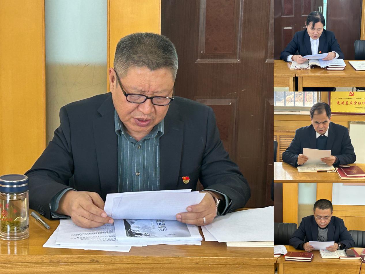 會(huì)上,在支部書記帶領(lǐng)下全體黨員齊誦了《黨章》總綱的20、21自然段。集體學(xué)習(xí)了習(xí)近平主持二十屆中共中央政治局第八次和第九次集體學(xué)習(xí)重要講話精神、習(xí)近平總書記在江西考察時(shí)的重要講話精神和在進(jìn)一步推動(dòng)長江經(jīng)濟(jì)帶高質(zhì)量發(fā)展座談會(huì)上的重要講話精神、習(xí)近平總書記在第三屆“一帶一路”國際合作高峰論壇開幕式上的主旨演講和中共中央政治局會(huì)議精神、《求是》雜志第19、20期刊發(fā)的習(xí)總書記的兩篇重要文章《推進(jìn)中國式現(xiàn)代化需要處理好若干重大關(guān)系》和《開辟馬克思主義中國化時(shí)代化新境界》、金湘軍主持召開省委主題教育領(lǐng)導(dǎo)小組會(huì)議業(yè)精神和山西省委召開全省領(lǐng)導(dǎo)干部會(huì)議精神及五屆市委第90次常委會(huì)會(huì)議精神。組織委員公布了上月黨務(wù)活動(dòng)、黨費(fèi)收繳等情況。支部百分之九十五以上黨員和群眾已完成了“學(xué)習(xí)強(qiáng)國”年度學(xué)習(xí)目標(biāo)。