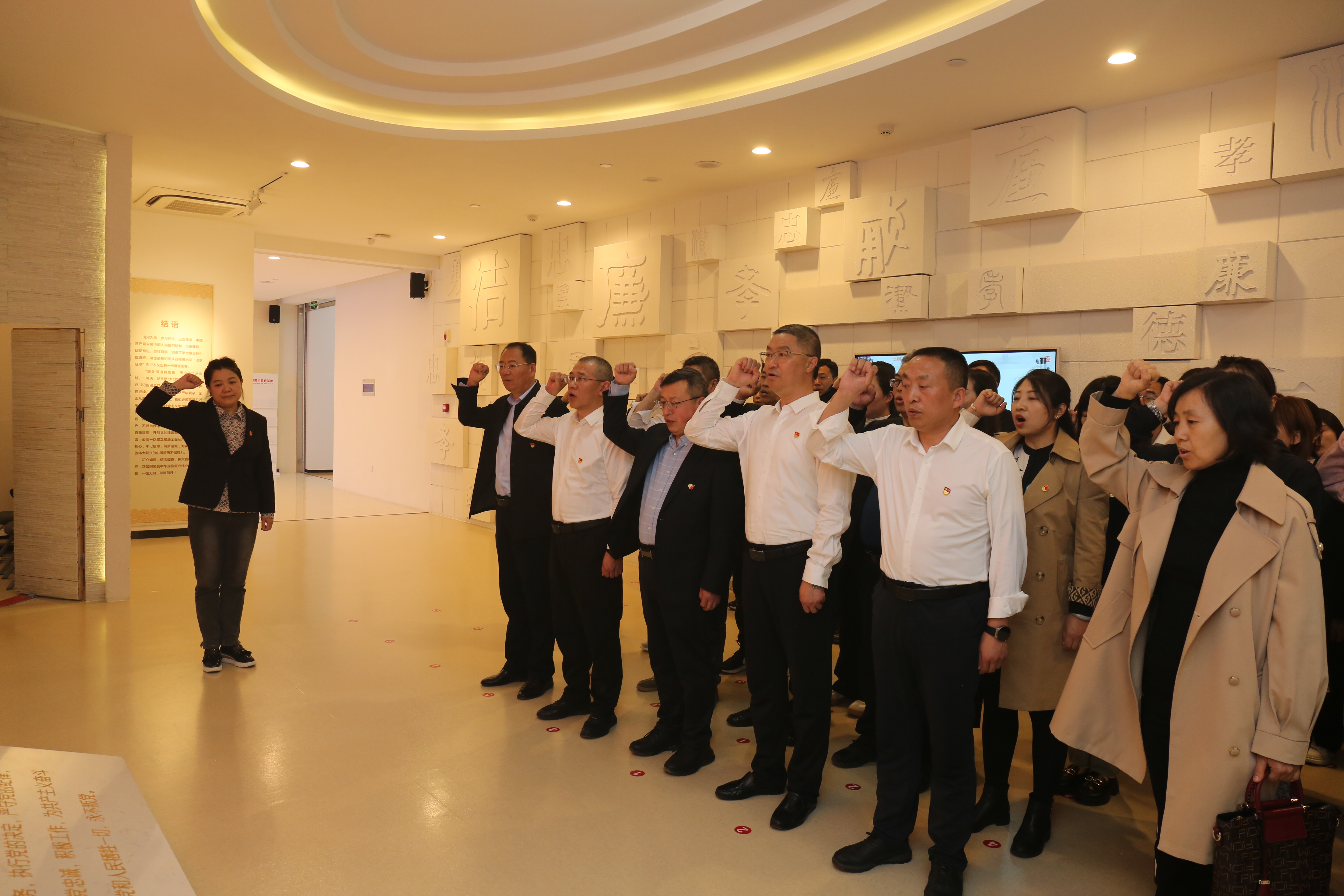 為進(jìn)一步推進(jìn)全面從嚴(yán)治黨,教育引導(dǎo)黨員干部堅(jiān)定理想信念,增強(qiáng)廉潔意識,筑牢拒腐防變的思想防線,支部組織全體黨員干部前往運(yùn)城市廉政警示教育基地開展了一次深刻的黨性教育。全體人員首先在序廳中認(rèn)真觀看了以“不忘初心,筑夢運(yùn)城”為主題的專題片。隨后在講解人員的帶領(lǐng)下依次參觀了“溯源·河?xùn)|育清風(fēng)”“鑄魂·守正葆初心”“警示·歧路誤終生”“使命·同心共筑夢”等展廳。大家有序觀看、仔細(xì)聆聽,通過一張張圖片、一樁樁案例、一幕幕短片,深入了解運(yùn)城先賢廉吏的典型事跡和身邊黨員干部違紀(jì)違法的典型案例,所有黨員干部都受到了強(qiáng)烈的思想沖擊和心靈震撼,進(jìn)一步認(rèn)識到了黨風(fēng)廉政建設(shè)的重要性和廉潔自律的必要性。參觀結(jié)束后,全體黨員干部面對鮮紅的黨旗,莊嚴(yán)宣誓。大家紛紛表示,要以此次參觀學(xué)習(xí)為契機(jī),以案為鑒,以案促改,不斷提高反腐“免疫力”,常思貪欲之害,常懷律己之心,時刻做到防微杜漸,自覺樹牢廉潔自律意識,做到不觸“紅線”、不踩“底線”,扎實(shí)干好本職工作,永葆清廉本色。