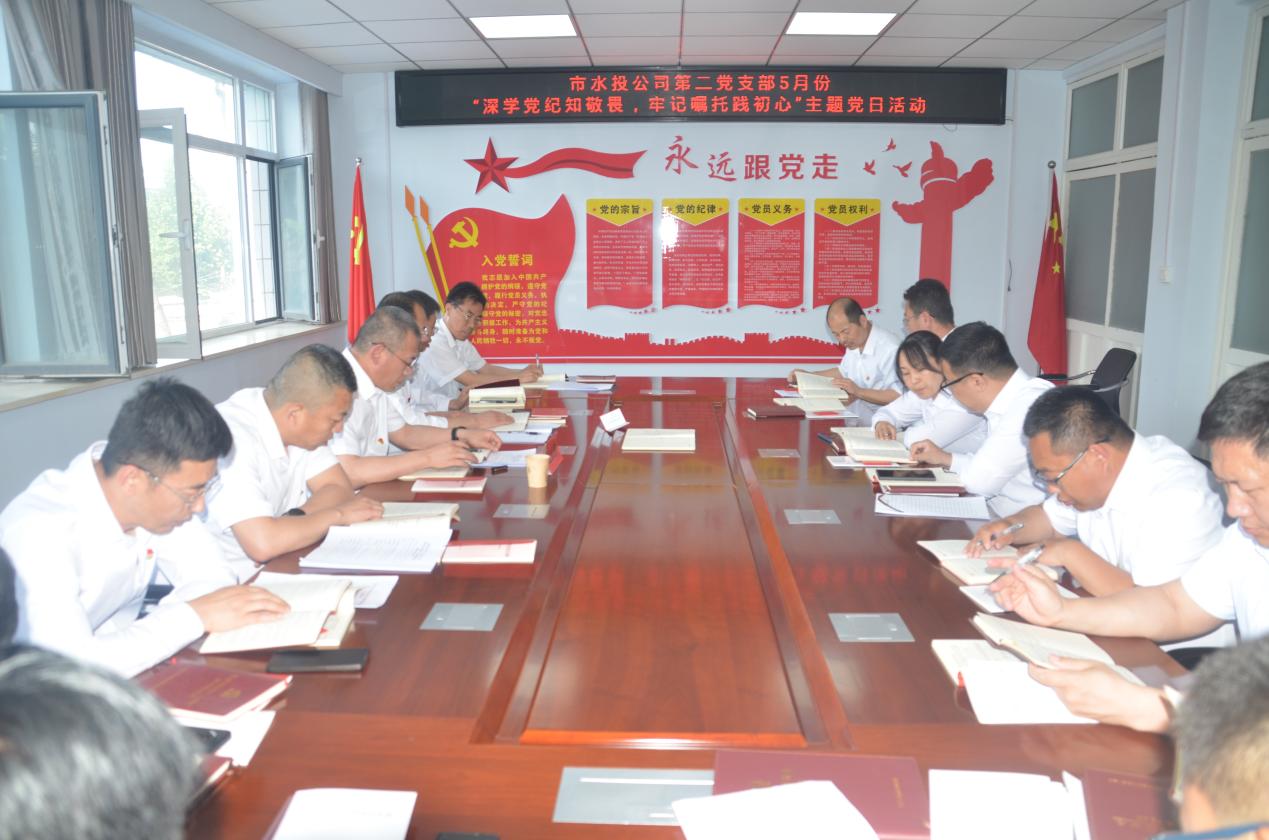 按照市水投公司黨委統(tǒng)一部署要求,第二黨支部于2024年5月6日下午開(kāi)展了“深學(xué)黨紀(jì)知敬畏 牢記囑托踐初心”主題黨日活動(dòng),支部全體黨員、積極分子參加會(huì)議,支部書(shū)記吳爭(zhēng)兵主持會(huì)議。市水投公司黨委委員,副總經(jīng)理范永勝參加支部主題黨日活動(dòng)。