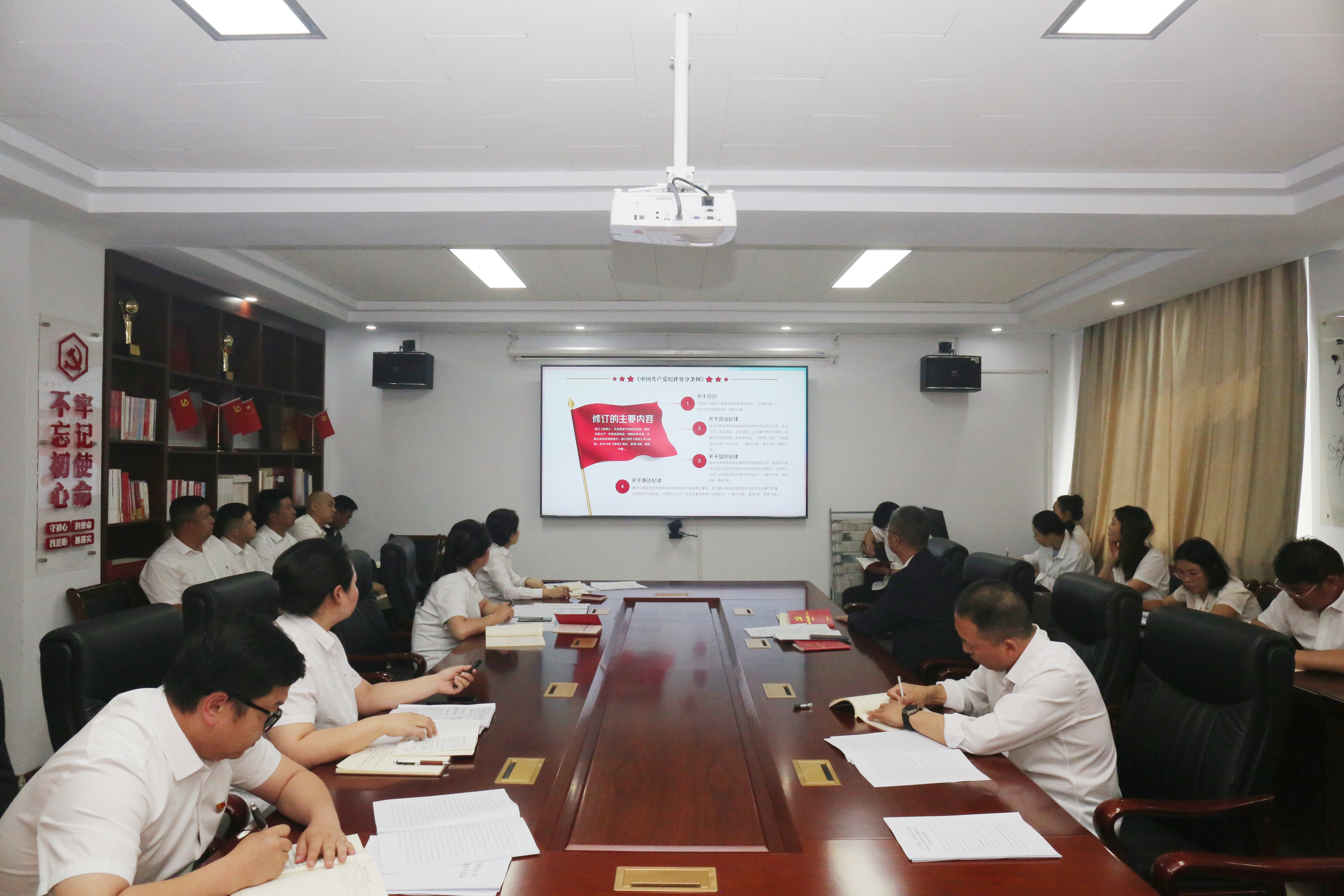為扎實推進黨紀學習教育走深走實,進一步引導全體黨員干部樹牢責任意識、底線意識、紀律意識,組織委員胡凱菲圍繞《中國共產黨紀律處分條例》修訂的重要意義、新修訂的主要內容以及如何抓好《條例》的貫徹執(zhí)行,理論聯(lián)系實際進行授課,帶領參會人員重點對《條例》中新增的、平時容易忽略的、同志們可能存在認識誤區(qū)等違紀行為進行重點學習,引導黨員干部不斷強化紀律意識和規(guī)矩意識,嚴格規(guī)范“八小時”以外言行舉止,自覺抵制不良風氣,從源頭上筑牢遠離腐敗的思想防線。