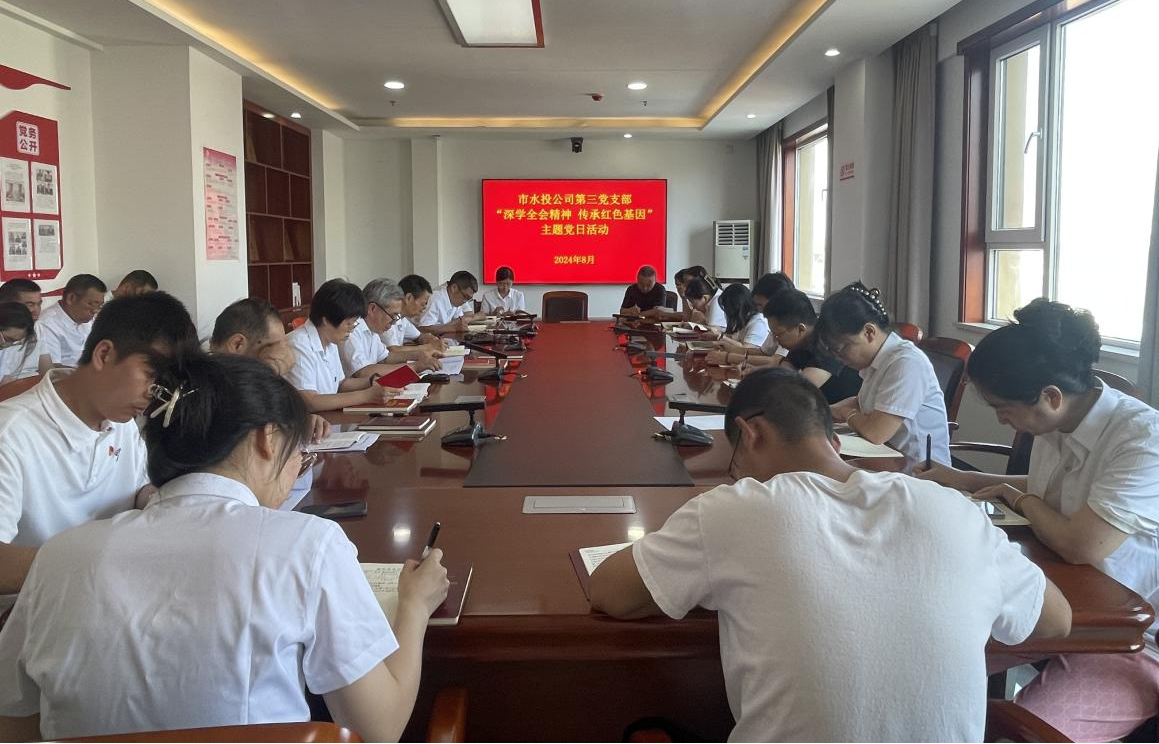 按照市委組織部《關(guān)于認(rèn)真開(kāi)展2024年8月黨支部主題黨日活動(dòng)的通知》要求,結(jié)合水投公司黨委安排部署,8月5日下午,第三支部組織黨員開(kāi)展了“深學(xué)全會(huì)精神 傳承紅色基因”主題黨日活動(dòng)。