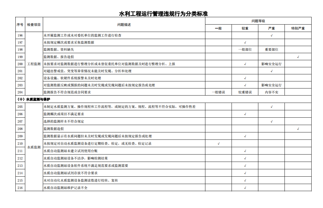 第六條 水利工程運行管理問題包括運行管理違規(guī)行為和工程缺陷。