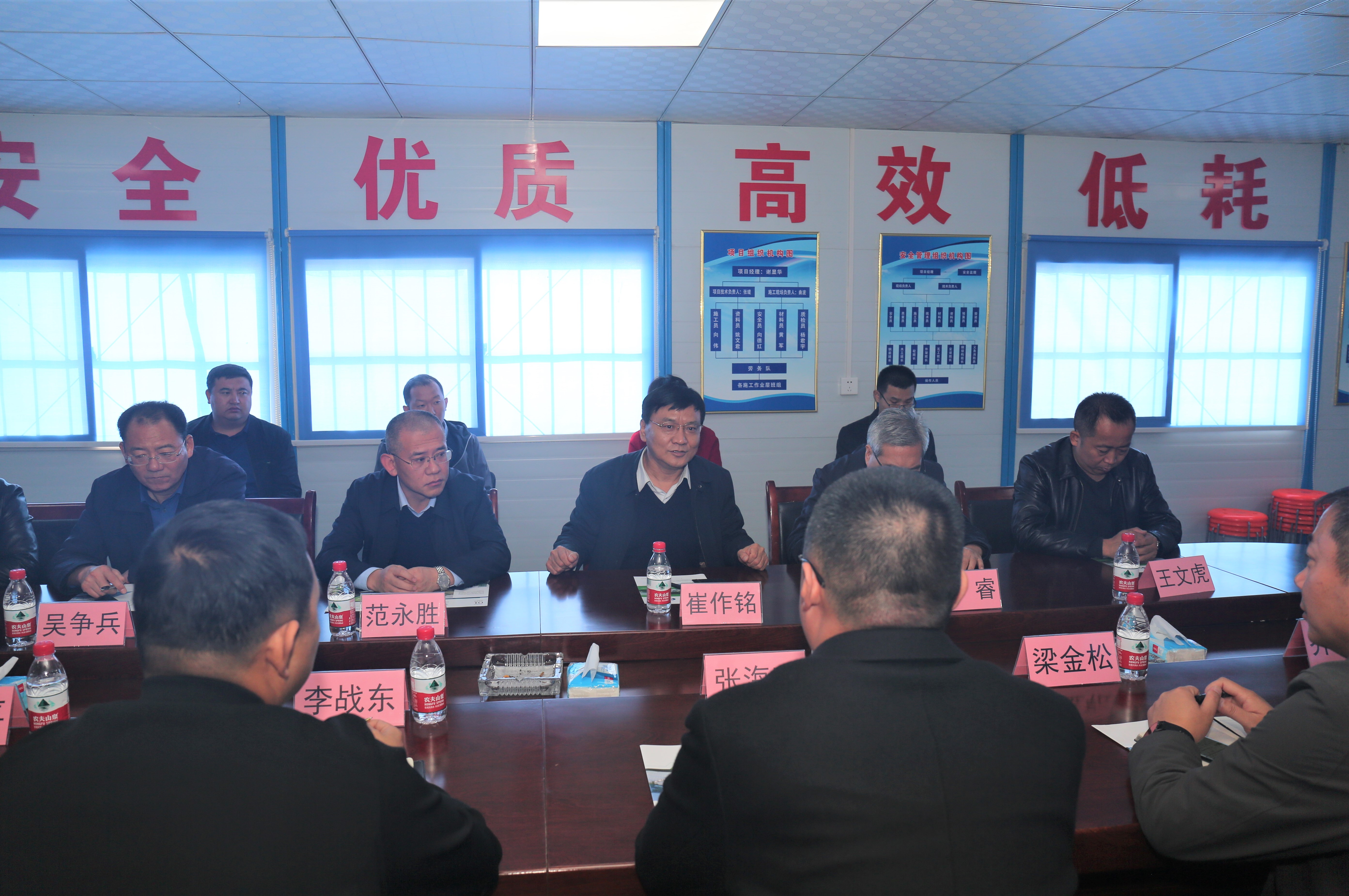 10月30日上午,董事長崔作銘攜副總經(jīng)理范永勝和公司相關(guān)部室、子公司、項(xiàng)目公司、項(xiàng)目部負(fù)責(zé)人到運(yùn)城萬瑞環(huán)??萍加邢挢?zé)任公司(以下簡稱萬瑞環(huán)保公司)參觀考察。