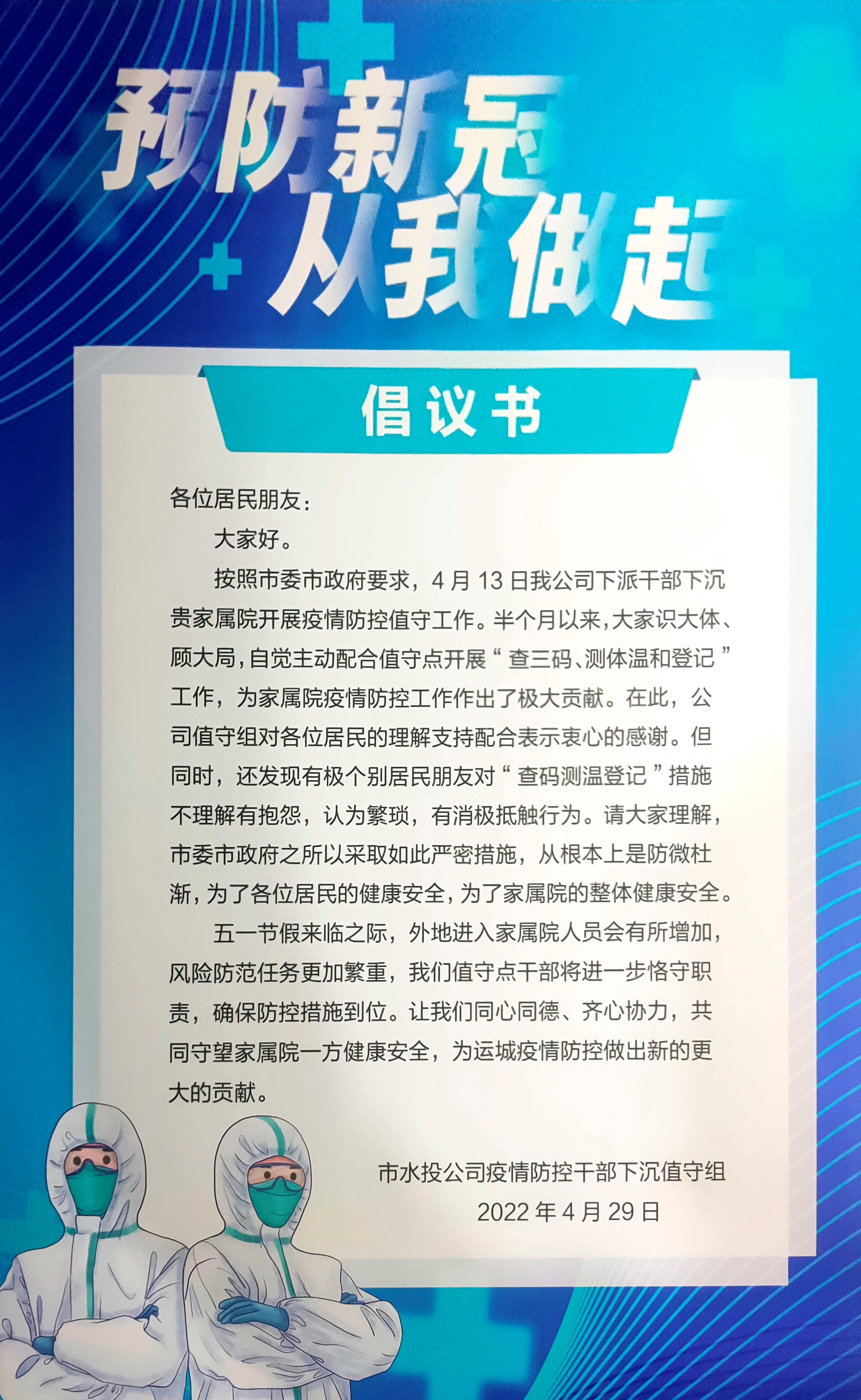 青年興則國家興,青年強則國家強。面對嚴峻的疫情防控形勢,在很多人戲謔“躺平”時,諸多青年不畏艱險、沖鋒在前,彰顯著奮斗才是時代的主流,用實際行動為疫情防控貢獻青春力量,運城水投公司的青年干部們就是不懼風雨,勇挑重擔,在戰(zhàn)役中擦亮青春底色,與新時代同心同向同行共奮進。