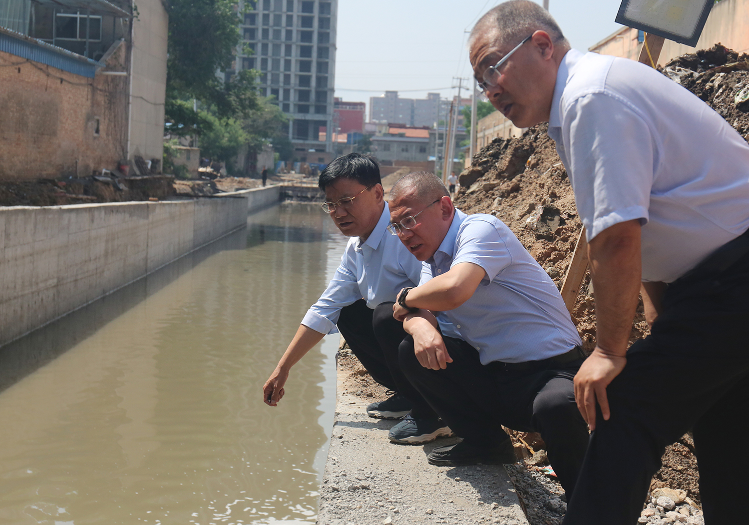 二是強化排查,消除隱患。下雨當(dāng)晚,公司黨委書記、董事長兼總經(jīng)理崔作銘帶領(lǐng)相關(guān)負(fù)責(zé)人冒雨赴姚暹渠禹都段、干河綜合治理項目工地對重點排水環(huán)節(jié)進行巡查排查,每到一處標(biāo)段,詳細(xì)詢問項目負(fù)責(zé)人實際情況,針對現(xiàn)狀,要求做到基坑及時回填,河道及時清理疏通,確保排洪渠道安全通暢,消除防汛隱患。