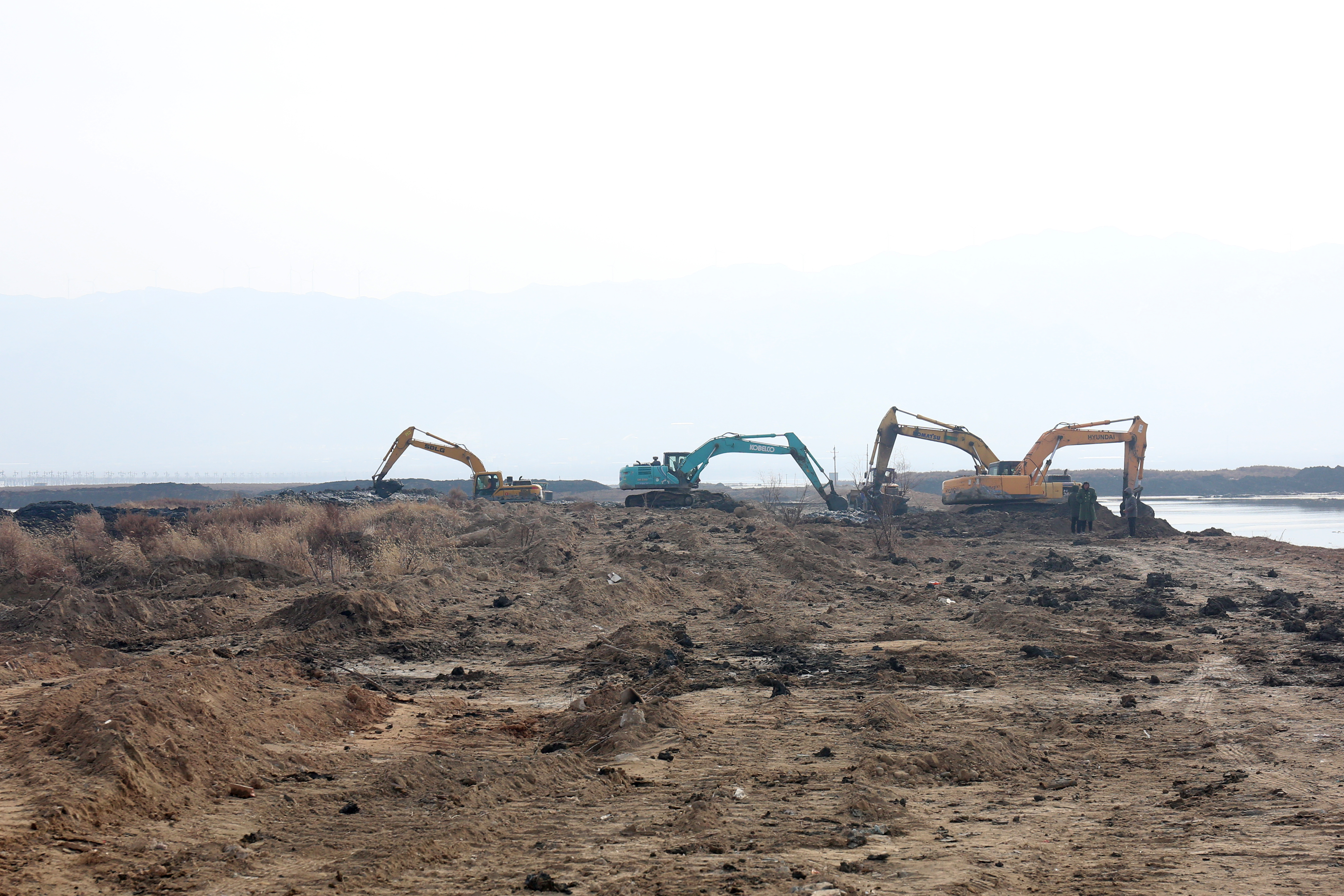 每到一處,詳細詢問施工人員康復情況、查看工地建設(shè)情況。干河清水復流段到處都是忙碌的工人,有安裝鋼壩閘的,有貼花崗巖的,有安裝欄桿的等;鹽湖生態(tài)治理工地上機械轟鳴,挖掘機、鏟車、挖泥船等20余臺大型機械有序運作,施工人員搶抓工期,處處涌動著建設(shè)熱潮。