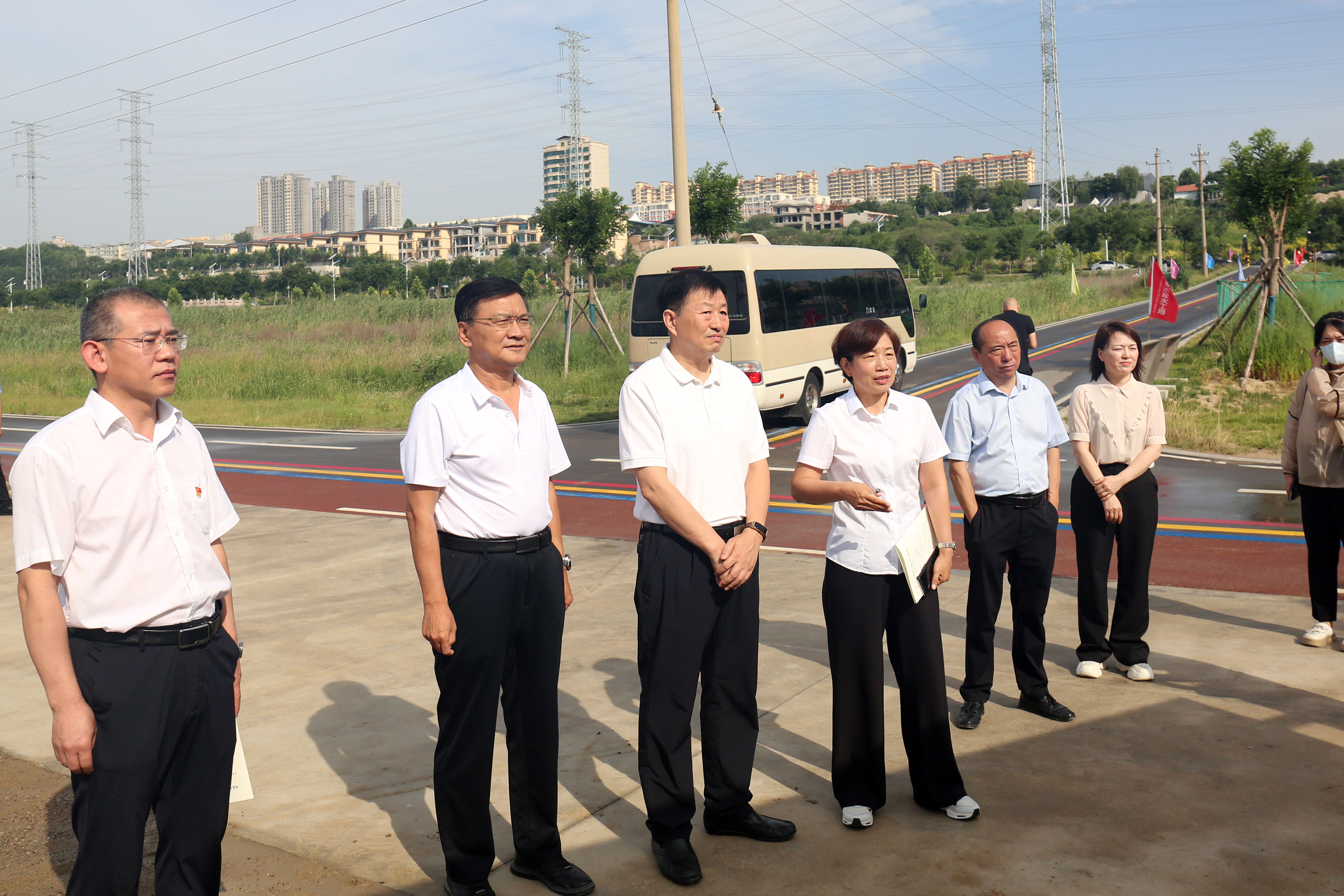 慰問(wèn)中,市人大常委會(huì)副主任、市總工會(huì)主席潘志孝一行認(rèn)真聽(tīng)取水投公司董事長(zhǎng)崔作銘對(duì)項(xiàng)目建設(shè)情況介紹,詳細(xì)詢問(wèn)一線職工生活情況,對(duì)他們不畏高溫酷暑、堅(jiān)守崗位甘于奉獻(xiàn)的勞動(dòng)精神表示贊揚(yáng)和感謝,并鼓勵(lì)大家堅(jiān)定干好工作的決心,發(fā)揚(yáng)拼的精神、闖的干勁,弘揚(yáng)勞模精神、發(fā)揮工匠精神,建設(shè)綠色生態(tài)新鹽湖。