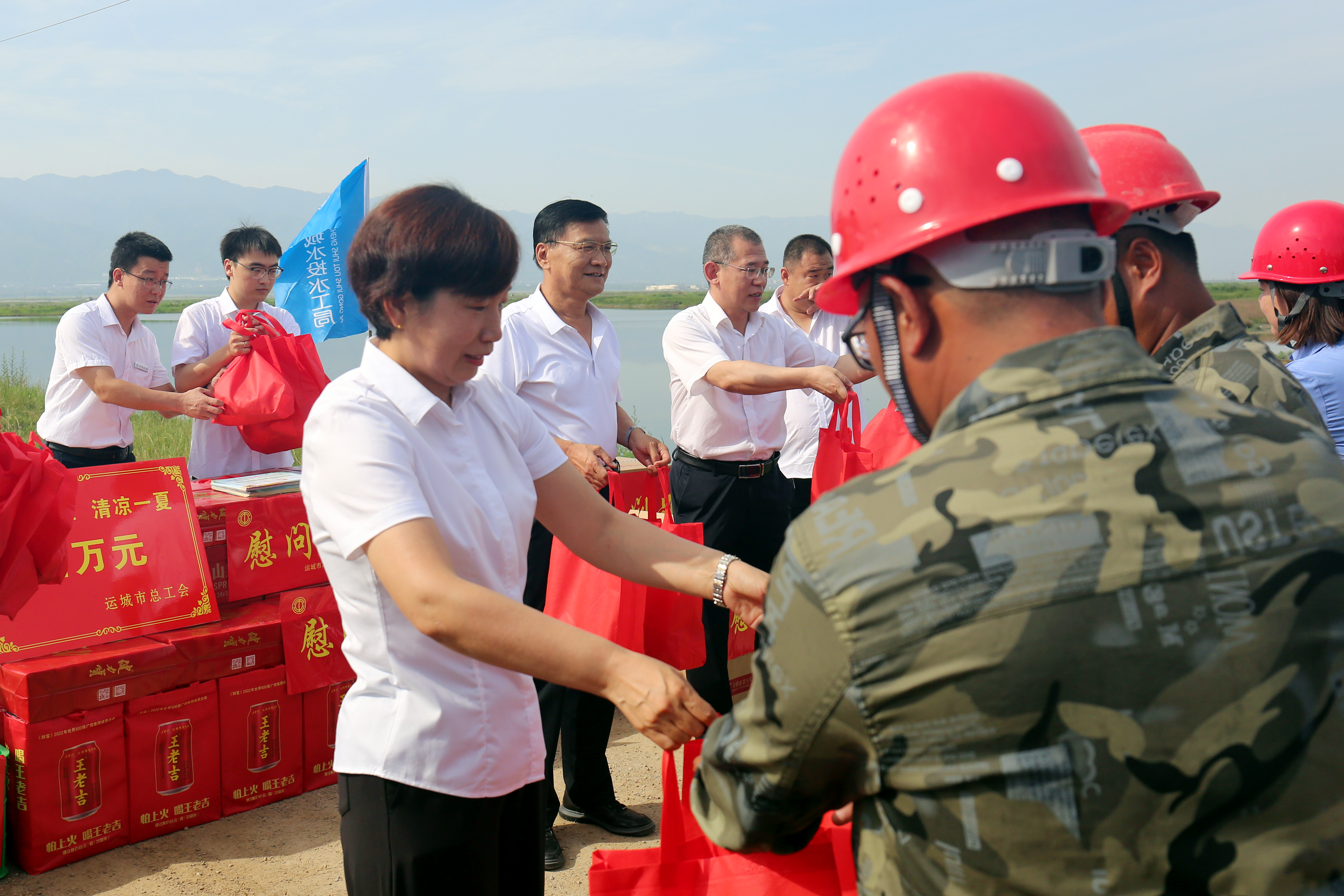 7月7日上午,市人大常委會(huì)副主任、市總工會(huì)主席潘志孝一行赴我公司鹽湖堤埝項(xiàng)目現(xiàn)場(chǎng)開(kāi)展“情系職工,清涼一夏”慰問(wèn)活動(dòng),為奮戰(zhàn)在一線的建設(shè)者送上清涼大禮包,送去了市委市政府和工會(huì)“娘家人”的深切關(guān)懷。