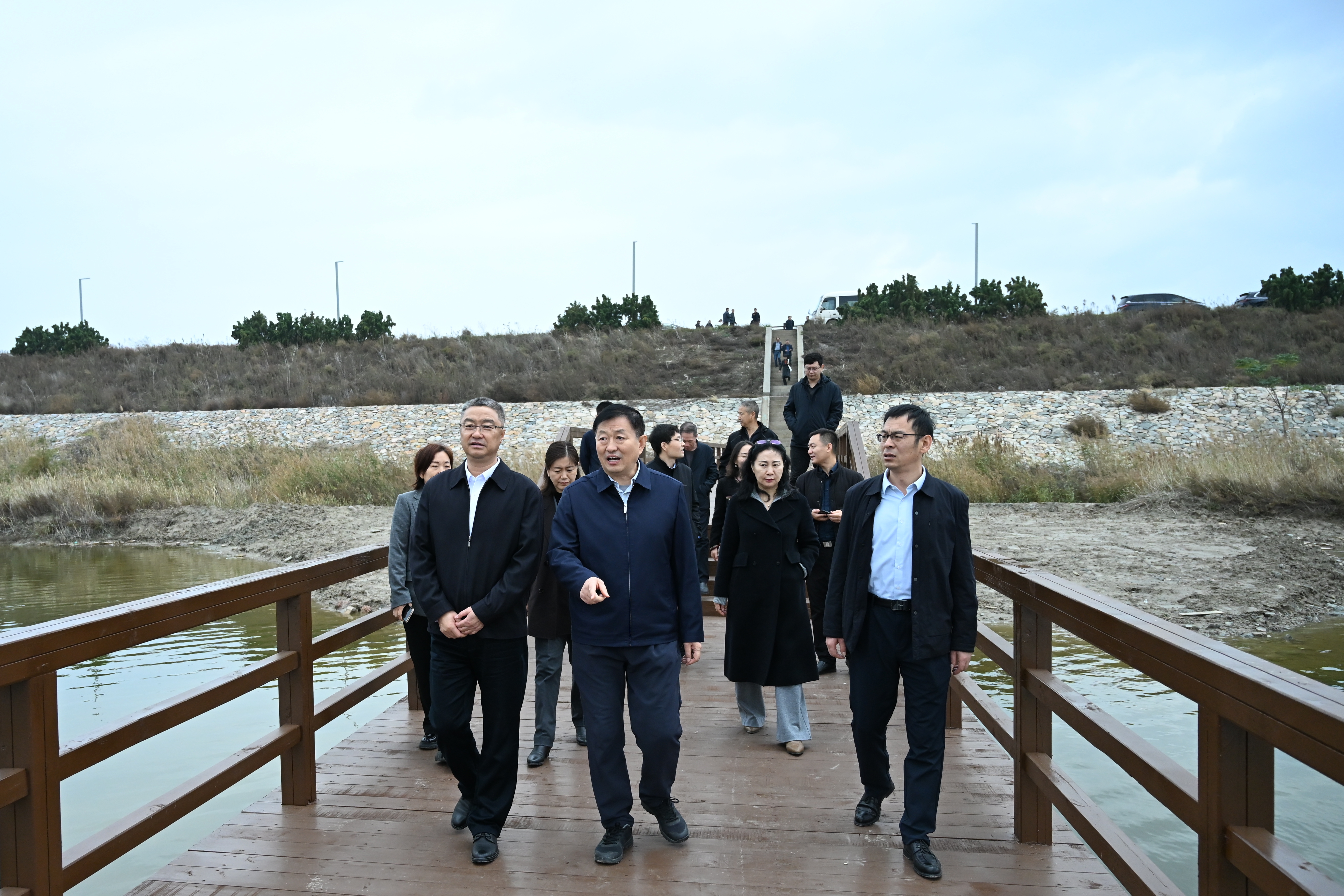 潘志孝一行實地考察鹽湖生態(tài)濕地公園、鹽湖木棧道項目建設情況,聽取相關匯報,詳細了解工程進展。