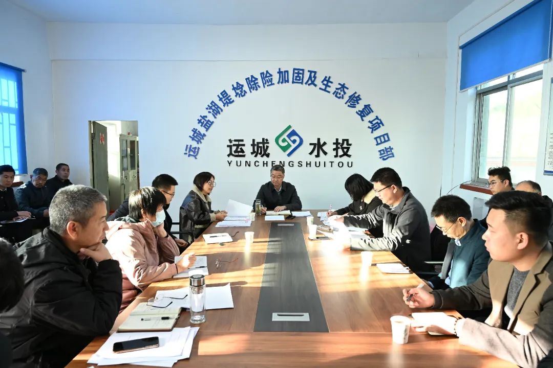 11月26日,市水投公司在鹽湖堤埝除險加固及生態(tài)修復項目部召開工作推進會。公司董事長薛文兵、總經理楊素平、項目部全體人員及監(jiān)理單位、設計單位、施工單位相關負責人40余人參會。