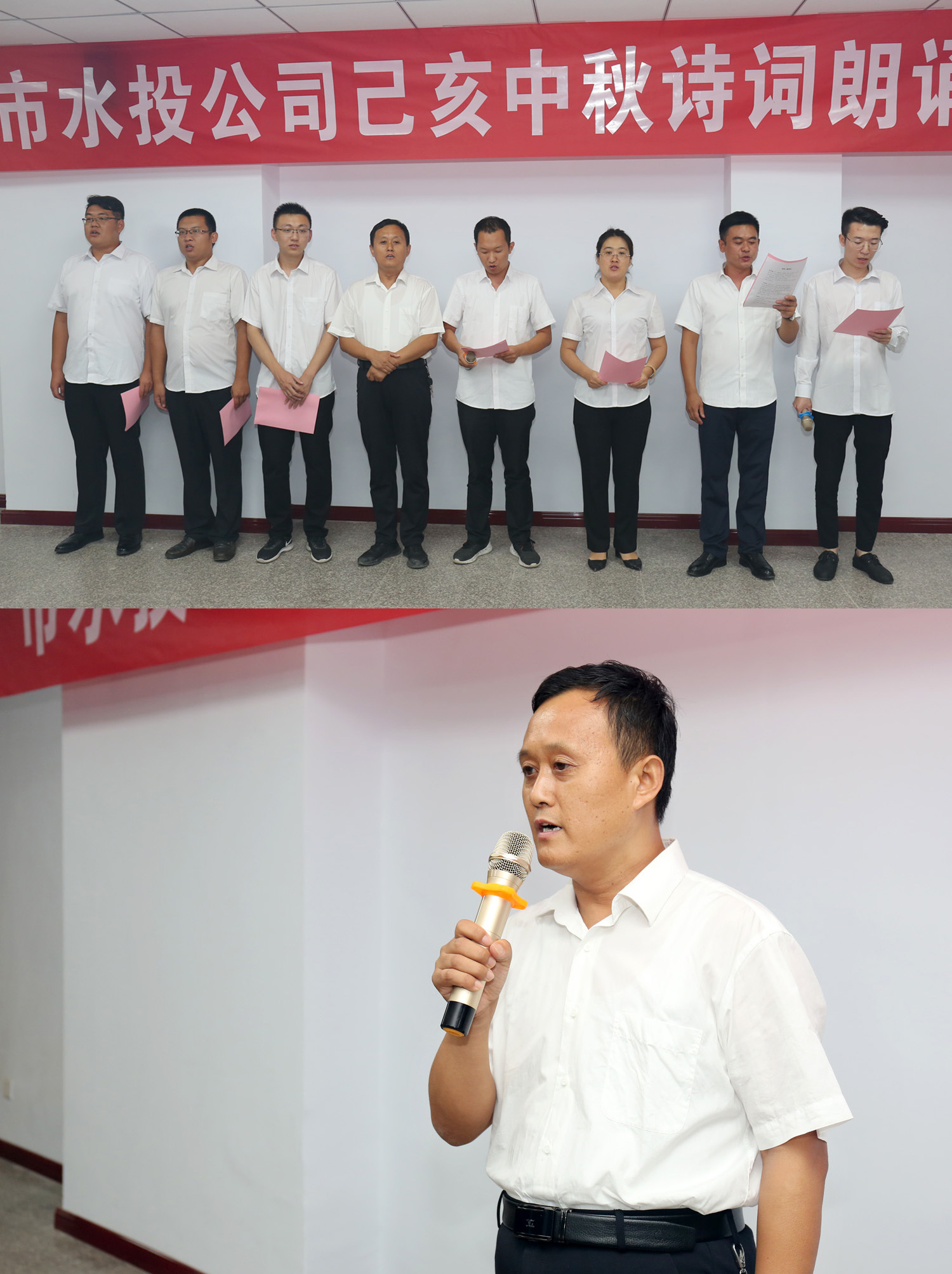 朗誦會開始前,公司黨委書記、董事長兼總經(jīng)理崔作銘致辭,向為水投建設(shè)發(fā)展辛勤耕耘默默奉獻(xiàn)的全體員工致以誠摯的問候和衷心的感謝,同時預(yù)祝各位員工中秋佳節(jié)快樂家庭幸福、身體健康。他希望全體員工“守初心、擔(dān)使命,找差距、抓落實”,以“長風(fēng)破浪會有時,直掛云帆濟(jì)滄海”的豪情,以“千淘萬漉雖辛苦,吹盡狂沙始到金”的毅力,以抓鐵留痕,踏石留印的執(zhí)行精神,再寫傳奇,再譜新篇!