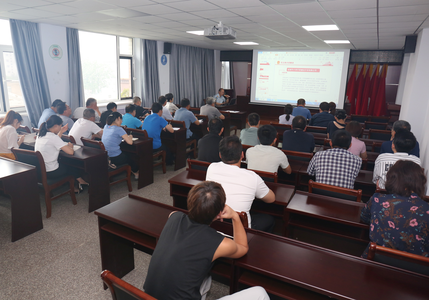 王銀良律師將《民法典》分成兩個部分解讀,第一部分為綠色原則解讀,第二部分為生活里的民法典。王銀良律師用通俗的語言和生動的例子,為大家深刻進行了民法典法律解讀,授課內(nèi)容緊貼企業(yè)生產(chǎn)經(jīng)營,從綠色原則解讀了在水系規(guī)劃建設(shè)及生態(tài)環(huán)境保護的相關(guān)舉措上的法律制度和政策導(dǎo)向;授課內(nèi)容緊貼生活,從《婚姻法》、《繼承法》、到《物權(quán)法》,關(guān)系到每一個人生活的方方面面,使參會人員學(xué)習(xí)到了新的法律知識,理解和把握了《民法典》對日常生活的重要意義。