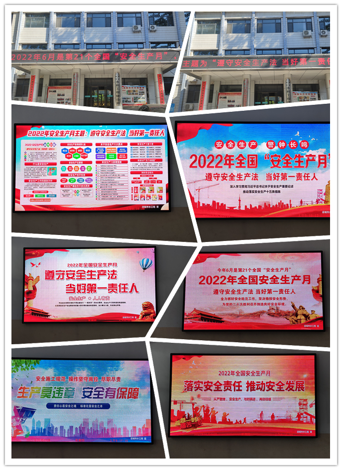 今年6月是全國第21個(gè)“安全生產(chǎn)月”,主題為“遵守安全生產(chǎn)法,當(dāng)好第一責(zé)任人”。為做好今年“安全生產(chǎn)月”的宣傳工作。近日,我公司通過門頭電子屏滾動(dòng)播放宣傳標(biāo)語、室內(nèi)電子屏展示安全生產(chǎn)知識(shí)、微信群發(fā)放最新版《中華人民共和國安全生產(chǎn)法》,時(shí)刻提醒公司全體員工遵守安全生產(chǎn)法,履行安全生產(chǎn)責(zé)任制。