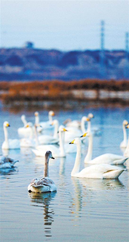 冬日暖陽下,幾十只野生天鵝在鹽湖濕地棲息,它們時而嬉戲,時而覓食,成為一道美麗的風(fēng)景,吸引眾多市民游客打卡觀賞。運(yùn)城市鹽湖生態(tài)保護(hù)與開發(fā)中心的工作人員告訴記者,隨著生態(tài)環(huán)境持續(xù)向好,鹽湖已經(jīng)成為山西省鳥類多樣性最為豐富的區(qū)域之一,越來越多的候鳥前來過冬。與往年相比,天鵝的數(shù)量明顯增加。