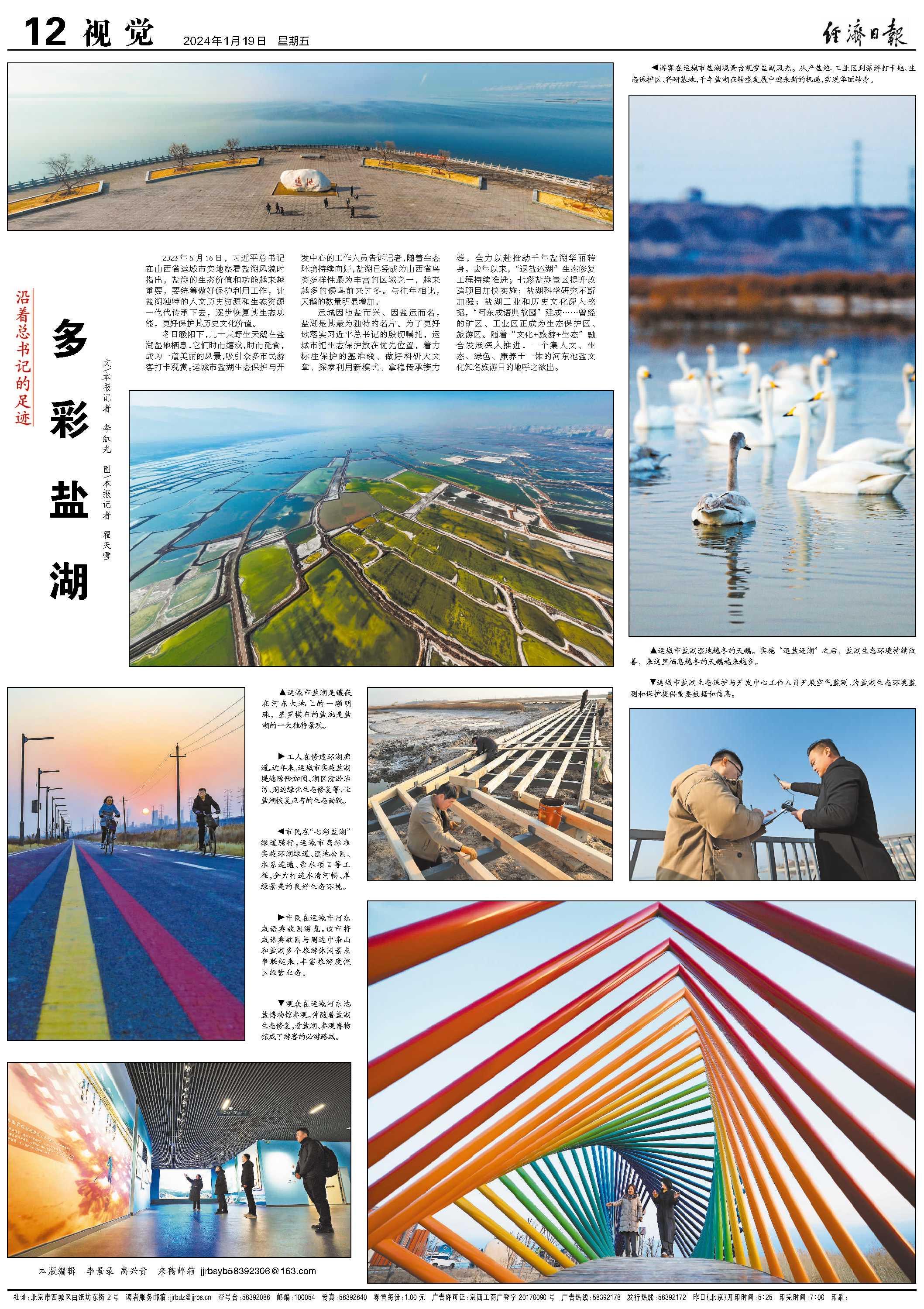 運(yùn)城因池鹽而興、因鹽運(yùn)而名,鹽湖是其最為獨(dú)特的名片。為了更好地落實(shí)習(xí)近平總書記的殷切囑托,運(yùn)城市把生態(tài)保護(hù)放在優(yōu)先位置,著力標(biāo)注保護(hù)的基準(zhǔn)線、做好科研大文章、探索利用新模式、拿穩(wěn)傳承接力棒,全力以赴推動千年鹽湖華麗轉(zhuǎn)身。去年以來,“退鹽還湖”生態(tài)修復(fù)工程持續(xù)推進(jìn);七彩鹽湖景區(qū)提升改造項(xiàng)目加快實(shí)施;鹽湖科學(xué)研究不斷加強(qiáng);鹽湖工業(yè)和歷史文化深入挖掘,“河?xùn)|成語典故園”建成……曾經(jīng)的礦區(qū)、工業(yè)區(qū)正成為生態(tài)保護(hù)區(qū)、旅游區(qū)。隨著“文化+旅游+生態(tài)”融合發(fā)展深入推進(jìn),一個集人文、生態(tài)、綠色、康養(yǎng)于一體的河?xùn)|池鹽文化知名旅游目的地呼之欲出。