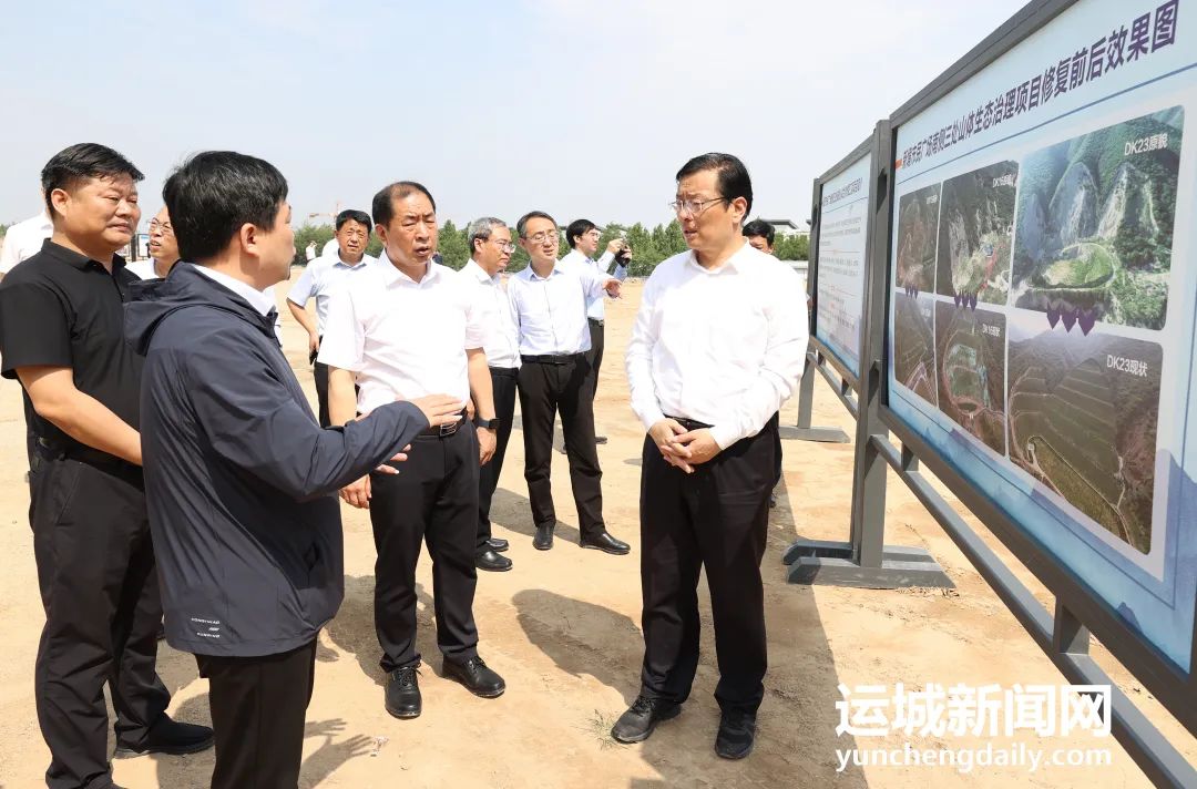 近年來,市委、市政府加大中條山廢棄露天礦山修復(fù)力度,昔日破損山體被綠植覆蓋、恢復(fù)原貌。在南山新境市民廣場,丁小強(qiáng)詳細(xì)了解受損山體生態(tài)修復(fù)情況,強(qiáng)調(diào),